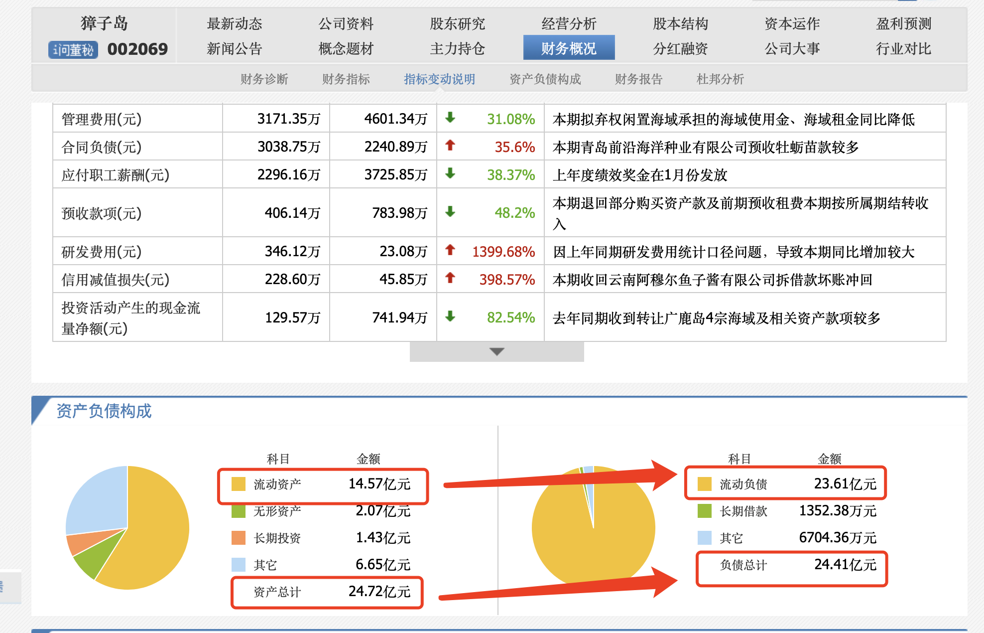 附表二:獐子岛最新资产负债情况