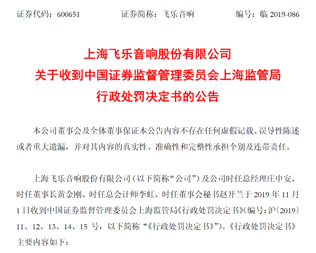 据悉,此案缘自飞乐音响在2019年11月因涉嫌信息披露违法违规遭证监会处罚。